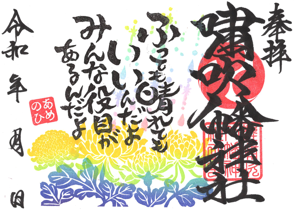 雨の日限定で頒布致します「雨の日御朱印」のお花が「菊」に変わります。